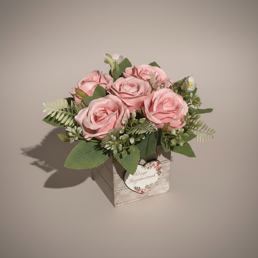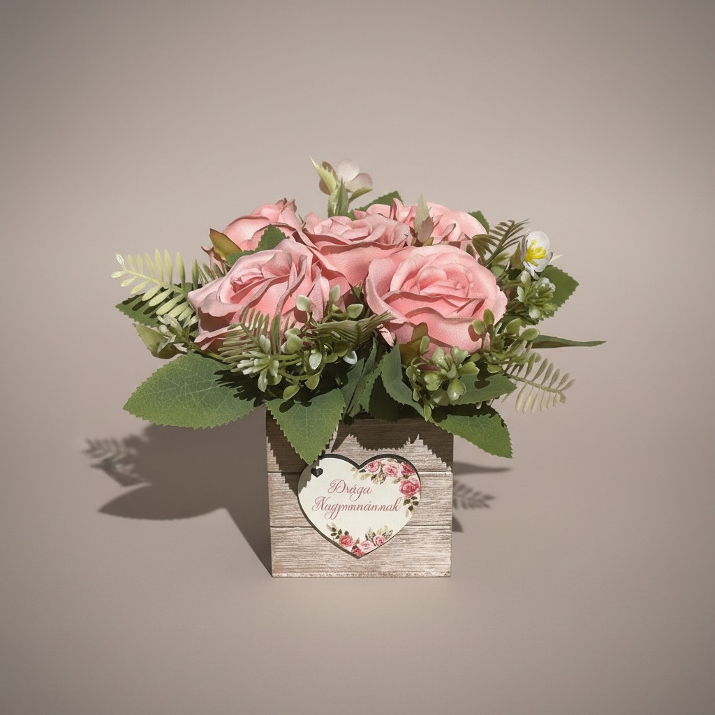 Megható ajándék nagyinak - rózsás virágbox fa dobozban - anyák napjára