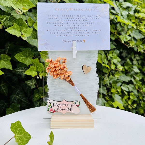 Szülőköszöntő ajándék plexi, tartóval-akár saját szöveggel