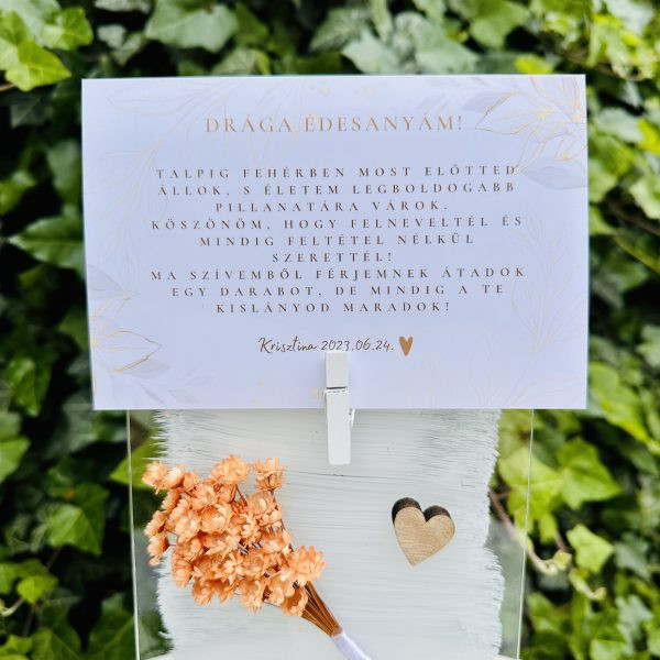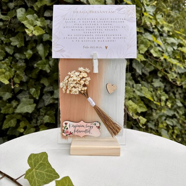 Fejezd ki szereteted, hálád az életért, amit kaptál szüleidtől! Letisztult és elegáns szülőköszöntő ajándék. Köszöntsd édesanyád, nagymamád kézzel készített gyönyörű plexivel, akril háttérfestéssel, szárított mini virágcsokorral, akár egyedi szöveggel!